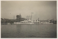 1939 , Nabrzeże Odra Stare w Szczecinie. W tle widoczny budynek dawnej stołówki z wieżą zegarową.Skomentuj zdjęcie