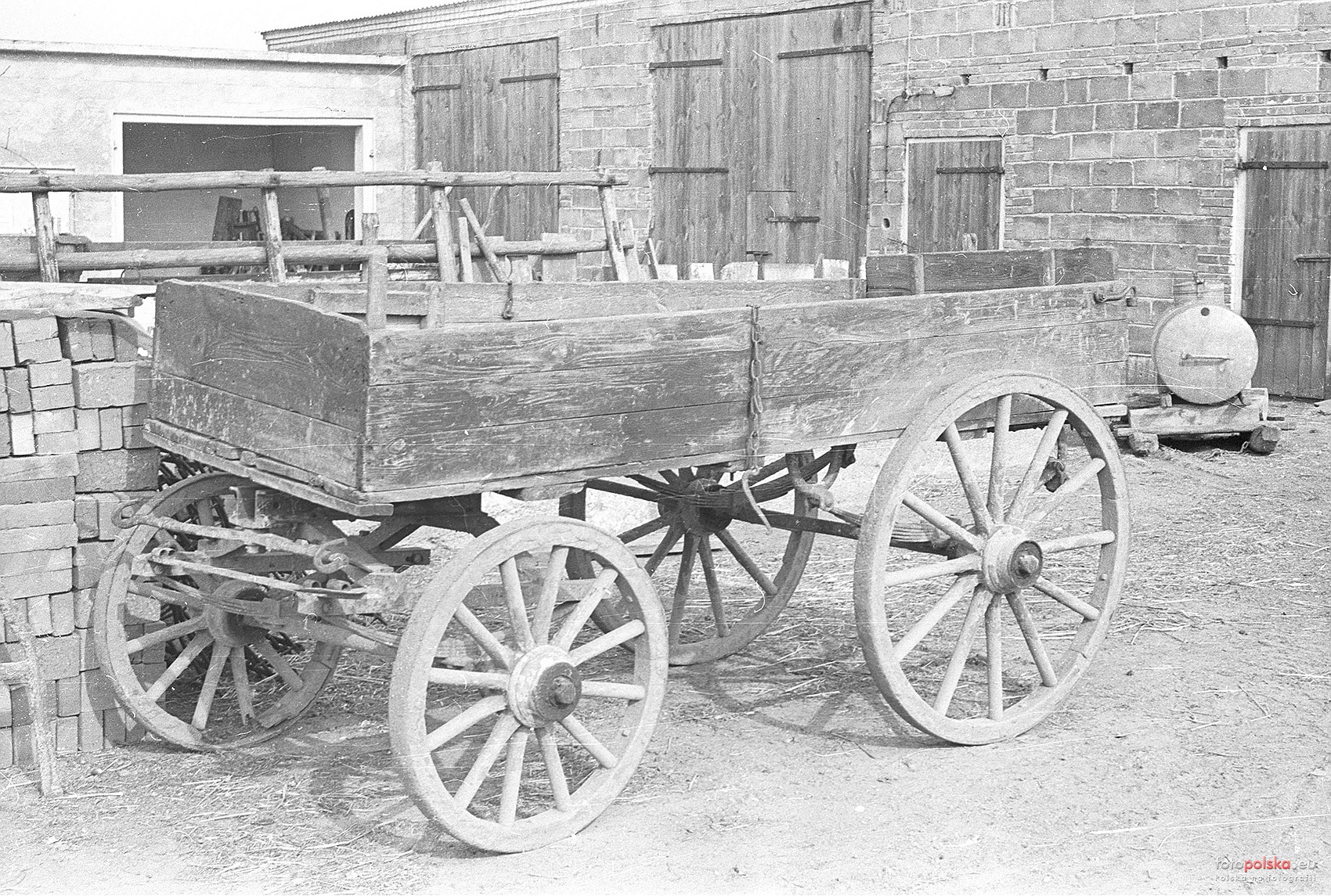 15 marca 1974 , Wóz do wożenia mleka, przerobiony z karawanu, z tyłu włók. Zdjęcie wykonane 15 III 1974 r. w gospodarstwie Franciszka Topolewskiego.Skomentuj zdjęcie |