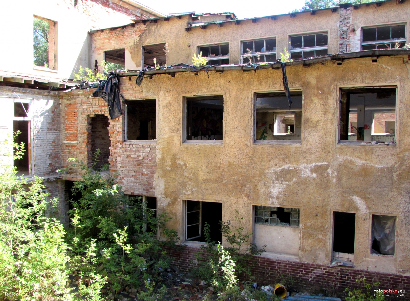 1 pobranie 490 odsłon 6 średnia ocen Poprzednie i następne zdjęcia legion Obiekty widoczne na zdjęciu Garnizonowy Dom Oficera więcej zdjęć (549) Zbudowano: 1935/36 Dawniej: Offizierheim, kasyno oficerskie W latach 1933-1939 rząd III Rzeszy wykupił część terenów wsi Linde i wysiedliwszy z nich ludność, przystąpiono do budowy bazy wojskowej i poligonu. W 1936 zakończono budowę miasteczka dla szkoły artylerii Wehrmachtu, którego otwarcia dokonał 18 sierpnia 1938 Adolf Hitler. W Groß Born obok kilku kantyn i kasyn, zbudowano w latach 1935-36 garnizonowe, okazałe i reprezentacyjne kasyno oficerskie nad jeziorem Pile. Mieściło się w w budynku o ciekawej architekturze, w którym znajdowała się wykwintna restauracja oraz olbrzymia sala koncertowa mogąca pomieścić na ok. 1000 widzów. W okresie radzieckim mieścił się tu Garnizonowy Dom Oficera z salą taneczną, szkołą muzyczną, biblioteką, salą kinową, salą koncertową i restauracją. Po wycofaniu się wojsk radzieckich obiekt znalazł prywatnego właściciela, który zamierzał przeznaczyć go na luksusowy hotel, rozpoczęto prace budowlane, zmieniając np. poszycie dachu nad salą koncertową. W dniu 1 lutego 2010 w budynku wybuchł pożar, który strawił m.in. salę koncertową i wiele innych pomieszczeń. Reszty dopełnili zlomiarze. Obecnie całość znajduje się w daleko idącej ruinie. ul. Chabrowa więcej zdjęć (600) |