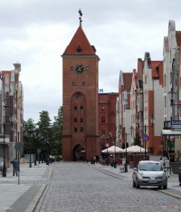 Brama Targowa więcej zdjęć (102) Atrakcja turystyczna Zbudowano: 1319, 1420-1430 Dawniej: Hoches Tor, Marcken Thor, Markttor, Zabytek: 197/N z 28.12.1961 Jest jednym z najbardziej charakterystycznych i rozpoznawalnych zabytków Elbląga. XIV-wieczna budowla stanowiła w przeszłości fragment wewnętrznego pierścienia nieistniejących już murów obronnych miasta. Odnowiony zabytek mieści w swoim wnętrzu Międzynarodowe Centrum Informacji Turystycznej, ekspozycję elbląskiego muzeum (ekspozycje będą się zmieniały, jednak motywem przewodnim będzie miasto Elbląg), mini kawiarenkę, sklep z pamiątkami, punkt widokowy oraz Salę Rycerską, która w niedalekiej przyszłości będzie stanowiła niewielkie centrum konferencyjne. Brama Targowa w Elblągu został zbudowana w XIV wieku, jako element miejskiego systemu fortyfikacji. Budowę dolnej części bramy ukończono w roku 1319, natomiast górną część nadbudowano do wysokości obecnej w latach 1420-1430. W roku 1639 zawieszono na bramie zegar, sfinansowany w całości przez kupca Isaaka Spieringa, później parokrotnie wymieniany. Po pożarze w roku 1777, który kompletnie zniszczył kościół św. Mikołaja i ratusz Starego Miasta, zegar na Bramie Targowej stał się najważniejszym czasomierzem w mieście. W 1755 roku na dachu Bramy Targowej pojawił się hełm w stylu barokowym, który ufundowali Elblążanie, stworzono także taras widokowy istniejący do 1945 r. W roku 1857 zamówiono z Berlina nowy zegar, a w 1819 r. wymieniono cyferblaty na większe, z pozłacanymi cyframi i wskazówkami. W trakcie ofensywy w lutym 1945 r. Brama Targowa mocno ucierpiała. Była jednak pierwszym elbląskim zabytkiem podniesionym z ruin - odbudowano ją w latach 1948-1949 w kształcie średniowiecznym (najbardziej charakterystyczną zmianą w wyglądzie jest powrót do starej formy dachu czterospadowego). W roku 2000 na bramie pojawił się zegar – bliźniaczo podobny do tego, jaki można zauważyć na elbląskich pocztówkach z okresu międzywojennego, lecz o nieco mniejszej tarczy. Chronometr ufundował miastu Ortwin Runde – nadburmistrz Hamburga, który urodził się w Elblągu. Generalny remont zabytku został przeprowadzony w 2006 roku. Odnowiono fasadę, odrestaurowano elementy architektury oraz przystosowano pomieszczenia wewnątrz bramy dla potrzeb Fundacji Elbląg. Na jednym z najwyższych pięter powstał zamknięty taras widokowy, z którego można podziwiać panoramę elbląskiego Starego Miasta. Możemy stąd również obejrzeć w całej okazałości główną arterię starego Elbląga - ulicę Stary Rynek. Wieczorami obiekt widać w blasku iluminacji świetlnej. W miejscu, gdzie do 1968 roku przejeżdżał pod Bramą tramwaj, spółka Tramwaje Elbląskie ułożyła fragment torów, aby przypominały mieszkańcom Elbląga oraz turystom dawny szlak komunikacyjny w mieście. Latem, w sezonie turystycznym, w Bramie czynny jest punkt informacji turystycznej. Źródło: ul. Stary Rynek więcej zdjęć (456) Dawniej: Alter Markt Stary Rynek wytyczono już w 1237 r., i jest to jedna z najstarszych ulic w mieście: badania archeologiczne potwierdzają jej istnienie przed wielkim pożarem z roku 1288. Ulicę, wówczas najdłuższą i najszerszą w mieście (370 m dł. i 24 m. szerokości) od północy zamyka od roku 1319 Brama Targowa, od południa zaś pierzeja ul. Wigilijnej. Ulica Stary Rynek od początku istnienia miasta była centralną arterią komunikacyjno-handlową i była w średniowieczu podzielona na odcinki, przy których prowadzono handel określonymi towarami: Targ Chlebowy (między ulicami św. Ducha i Mostową), Targ Sienny (między Rybacką i Bednarską), Targ Węglowy (między Bednarską i Studzienną), Targ Koński (między Kowalską i Wieżową). Przy Starym Rynku, w okolicy kościoła farnego pod wezwaniem św. Mikołaja, ulokowano najważniejsze obiekty życia publicznego: ratusz, sukiennice, budynek wagi oraz budy kramarskie. W 1578 roku przeniesiono też Dwór Artusa z ul. Rybackiej na róg Kowalskiej i Starego Rynku. [mike016] |