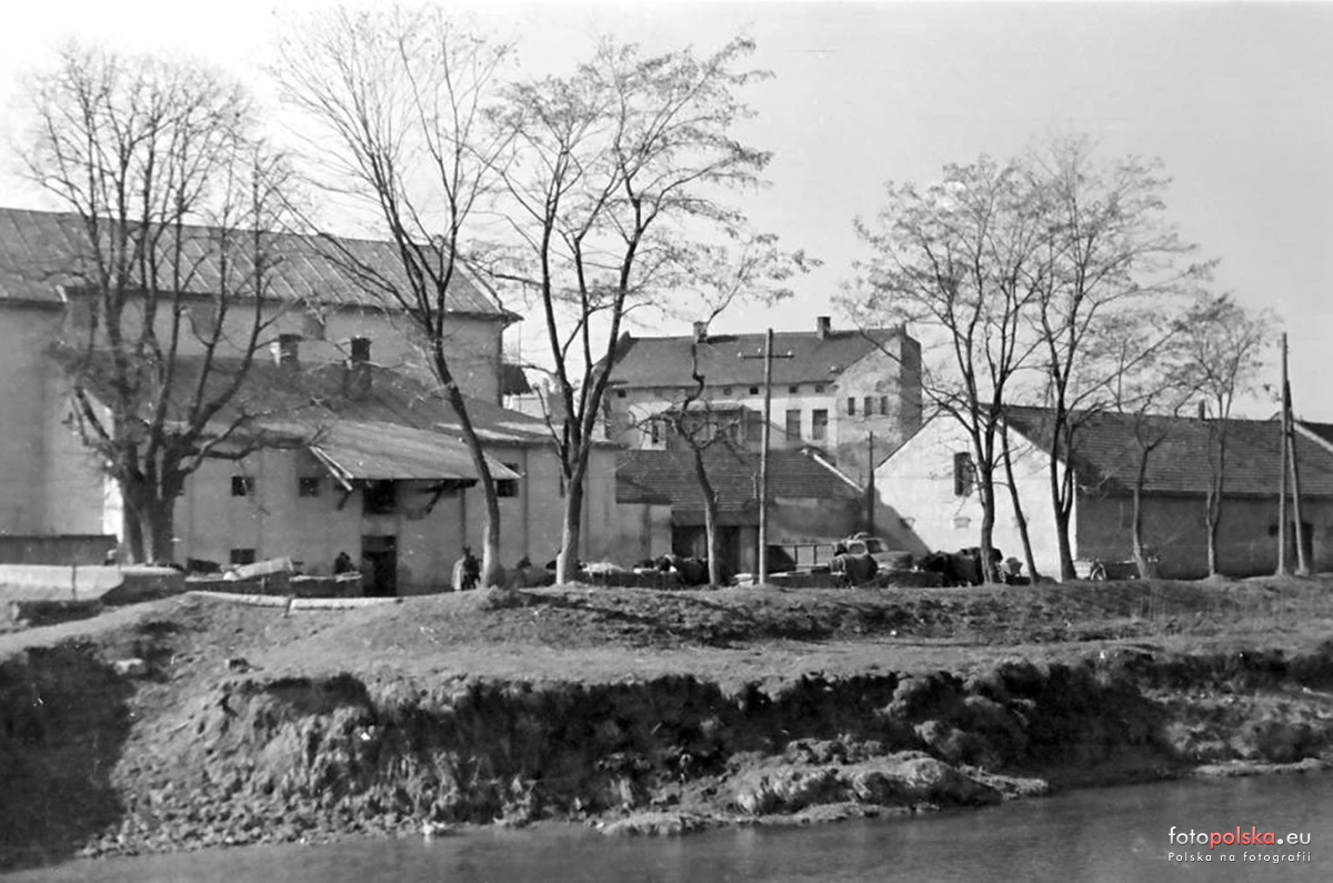 Lata 1950-1958 , Fotografia wykonana z prawego brzegu Kamienicy w stronę Baszty Kowalskiej. Na pierwszym planie zabudowania młyna jezuickiego, w głębi kamienica z adresem Tarnowska 4.Skomentuj zdjęcie |