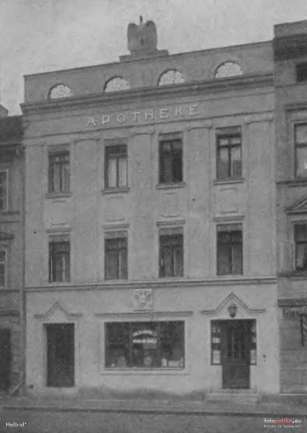 1925 , Apteka "Pod Orłem" (Adler-Apotheke) po rozbudowie kamienicy. [Crossener Kreis-Kalender 1939]Skomentuj zdjęcie