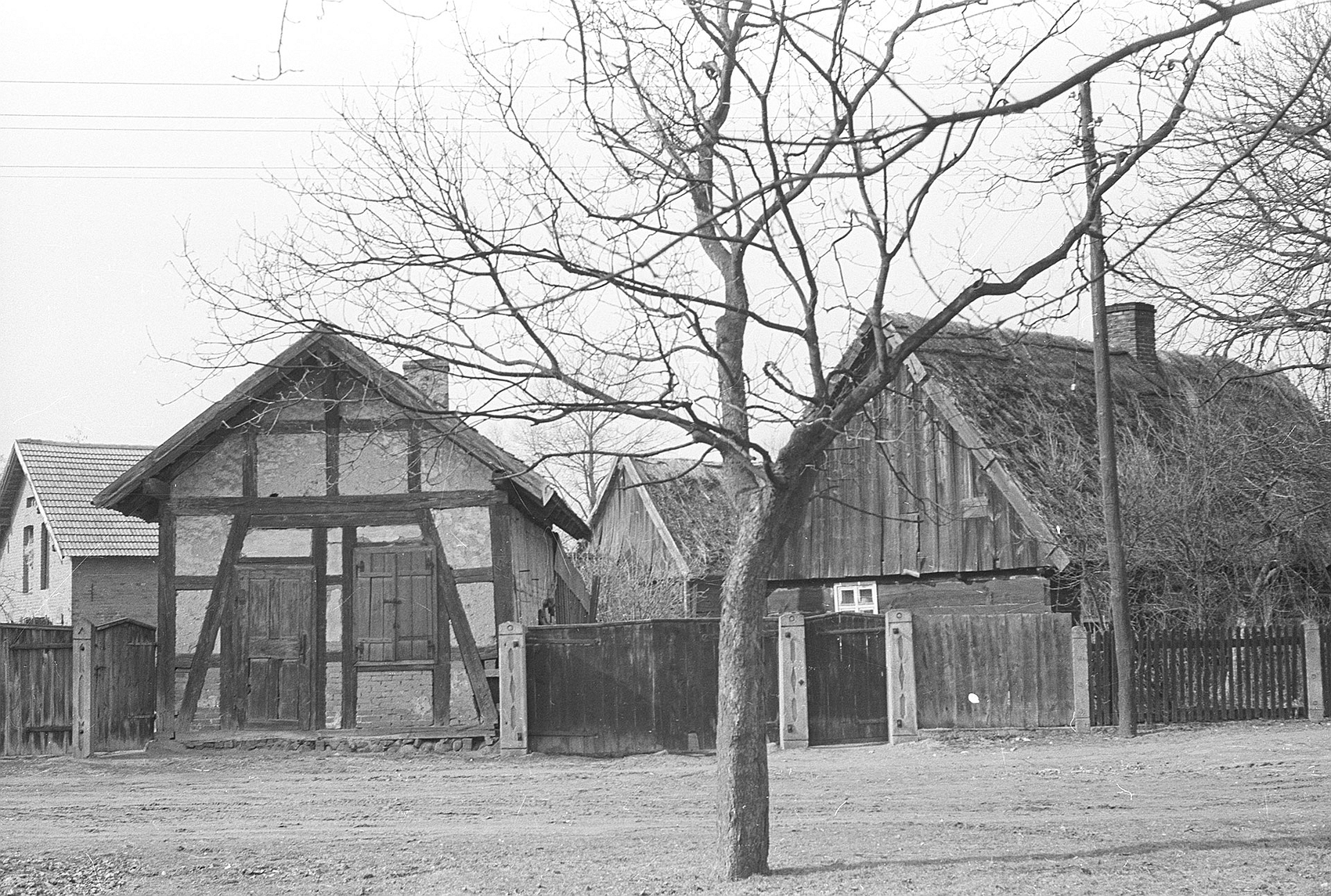 1975 , Dwa typowe we wsi rodzaje budownictwa: ryglowe i zrębowe obok siebieSkomentuj zdjęcie |