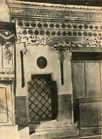 1938 , Wejście do zakrystii. Ponad drzwiami widoczna drewniana tablica z ok. 1600 r. przedstawiająca wywód genealogiczny członka rodu von Senitz z 32. herbami w dwóch rzędach, opatrzonych napisami objaśniającymi.Skomentuj zdjęcie |