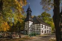 Kościół filialny Wniebowzięcia NMP więcej zdjęć (13) Architekt: Christian Isemer Atrakcja turystyczna Zbudowano: 1786 Dawniej: Evangelische Kirche Zabytek: 760/64 z 01.04.1964 Kościół powstał dla ewangelików sprowadzonych w ramach kolonizacji fryderycjańskiej. Reprezentuje typ kościoła salowego, z ołtarzem ambonowym, którego na Śląsku zachowały się tylko nieliczne przykłady. Radomierowice zostały założone w 1722 r. jako kolonia Pluemkenau podczas akcji osadniczej zainicjowanej przez króla pruskiego Fryderyka II. Osadnicy, w większości protestanci, przybyli głównie z landów niemieckich, Palatynatu i Hesji. Poza nadaniem im lokacyjnych praw i przywilejów, państwo ufundowało także kościół dla gminy ewangelickiej. Budową drewnianego kościoła w l. 1787-1788 kierował cieśla Petzer wg proj. architekta Christiana Isemera. Konsekracja odbyła się 08-02-1789 r. Gruntowny remont przeprowadzono w 1860 roku. Po II wojnie światowej kościół przejęła parafia katolicka, a typowy dla protestanckiej przestrzeni liturgicznej ołtarz ambonowy został podzielony. Dawny zbór ewangelicki położony jest w południowo-wschodniej części wsi, w otoczeniu niewielkiego cmentarza. Szkieletowy kościół ma formę prostokątnej nawy nakrytej czterospadowym dachem, do której od zach. przylega węższa, kwadratowa w planie wieża zwieńczona hełmem. Dachy kryte są gontem. Konstrukcję ścian stabilizują zastrzały w narożnikach, w wieży skrzyżowane. Elewacje tworzy kratownica drewnianej konstrukcji z ceglanym, pobielonym wypełnieniem; rytmiczny układ okien w 2 poziomach, w zwieńczeniu profilowany gzyms podokapowy. W jednoprzestrzennym wnętrzu (charakterystycznym dla nowo budowanych zborów) wydzielono zakrystię w północno-wschodnim narożniku. Wzdłuż trzech ścian przebiegają drewniane, wsparte na słupach empory, zachodnia pełni rolę chóru muzycznego. Wystrój wnętrz jest bardzo skromny, elementy drewnianej konstrukcji są odsłonięte, nawa przykryta stropem belkowym. We wsch. części znajduje się d. ołtarz ambonowy z ok. 1790 r. - ok. poł. XX w. pozbawiony kazalnicy. Zdemontowana ambona (wyjątkowo dominująca rozmiarami nad ołtarzem) przechowywana jest pod chórem muzycznym, a w jej miejscu znajduje się obraz Matki Boskiej Częstochowskiej. Zachowane są schody, które prowadziły na nią z zakrystii, oraz baldachim. Z czasu powstania kościoła pochodzą także chrzcielnica i organy. Kościół jest użytkowany, dostępny. Należy do Parafii MB Śnieżnej w Dąbrówce Dolnej. Oprac. Joanna Szot, OT NID w Opolu, 2.11.2014 r. Źródło: (CC BY-NC-ND 3.0) ul. Szkolna więcej zdjęć (28) |