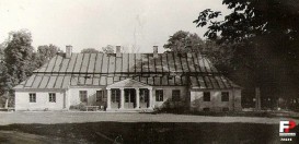 Lata 1950-1955 , Dwór Starostwo - murowany, parterowy z przełomu XVII i XVIII wieku, przebudowany na początku XIX wieku. Zbudowany na planie prostokąta z wysuniętymi dwoma alkierzami bocznymi, podpiwniczony. Posiada czterokolumnowy portyk, dach łamany czterospadowy. Usytuowany jest w parku o charakterze krajobrazowym z XIX wieczną aleją kasztanową.Skomentuj zdjęcie |