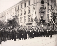 31 sierpnia 1897 , Przedstawiciele władz miejskich i mieszkańcy Warszawy na skrzyżowaniu Al. Jerozolimskich i Nowego Światu (przy kamienicy nr 2), oczekujący na przybycie cara Mikołaja.Skomentuj zdjęcie
