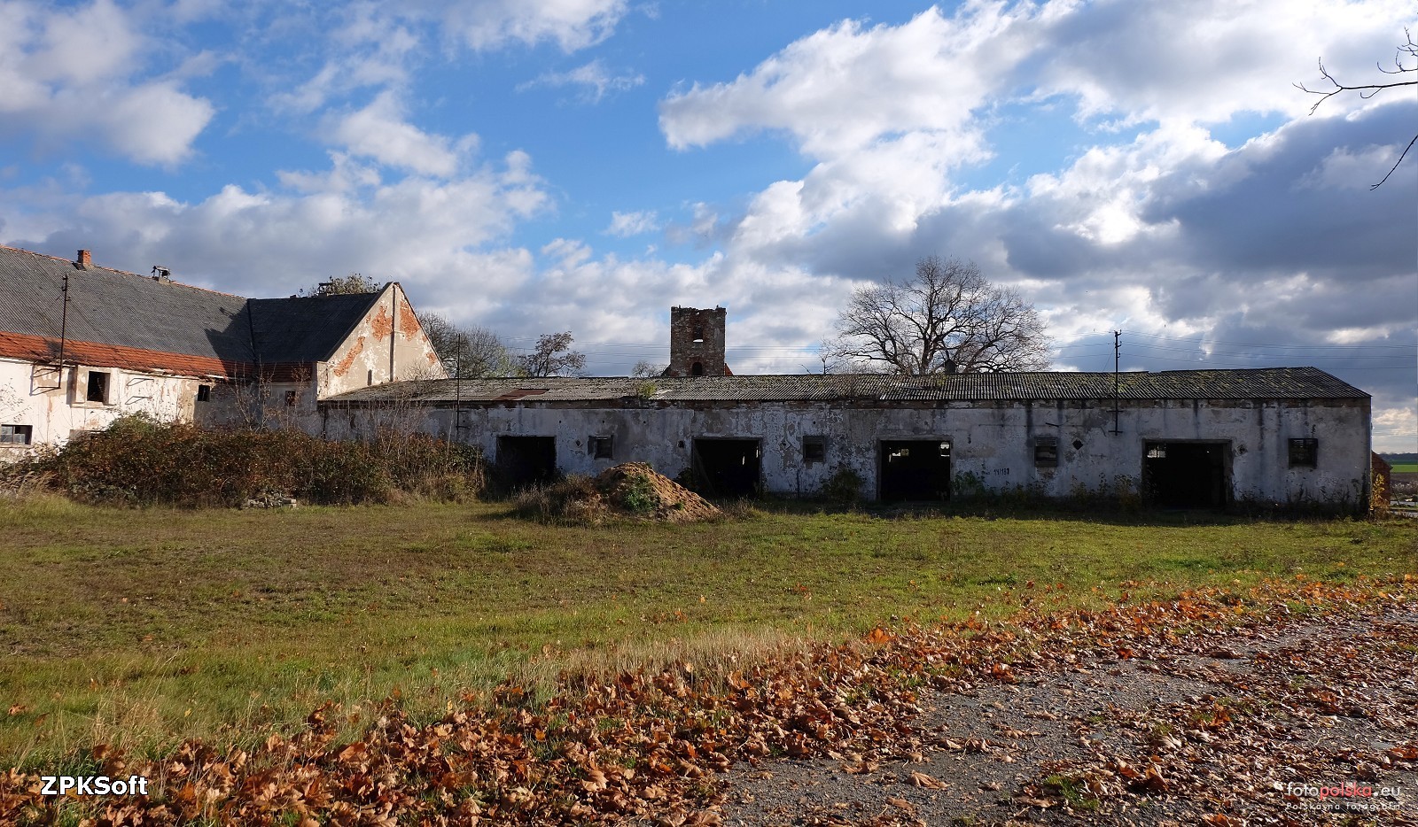 8 listopada 2015 , Zabudowania folwarczne zlokalizowane wokół XVIII w. pałacu. Tylko część budynków jest jeszcze użytkowana, reszta niszczeje. Na zdjęciu budynki stojące od strony wschodniej założenia. Widok od środka założenia, od ulicy ten sam obiekt można obejrzeć tuSkomentuj zdjęcie |