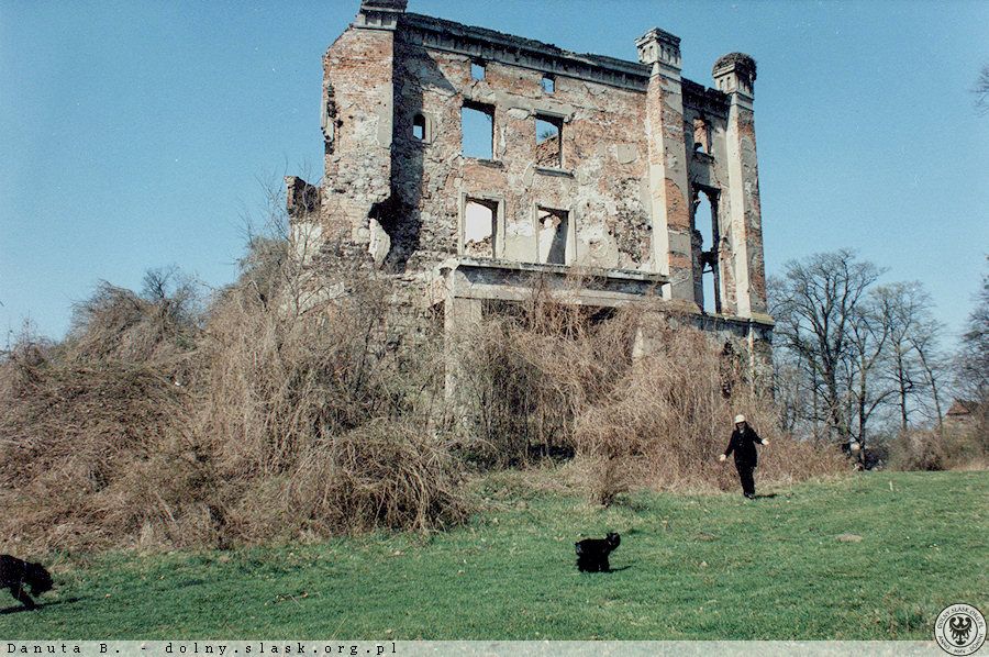 1 pobranie 1785 odsłon 5.73 średnia ocen Poprzednie i następne zdjęcia Niedźwiedź Obiekty widoczne na zdjęciu Zamek więcej zdjęć (51) Atrakcja turystyczna Zbudowano: 1319 Dawniej: Schloss Auras Zabytek: A/3913/400 z 24.11.1956 Historia Pierwsze wzmianki o należącej do książąt wrocławskich miejscowości Uraz pochodzą z początku XIII wieku, wzmianki o grodzie kasztelańskim strzegącym przeprawy na Odrze - sprzed połowy tego stulecia. W roku 1291 na mocy testamentu Henryka Probusa gród ten przeszedł wraz z ziemiami na prawym brzegu Odry na własność księcia Henryka głogowskiego, by w 1312 trafić w ręce synów głogowczyka: Konrada i Bolesława. Przy sporządzaniu aktów dziedzicznych potwierdzono wówczas miasto i zamek, określając je w dokumentach jako civitatem et castrum. Jednak już kilka lat później Uraz ponownie stał się własnością książąt wrocławskich i około 1319 przekazany został w lenno trzem braciom Radakom. Jeden z owych braci, Andreas Radak, rozbudował dotychczasowe założenie, którego pierwszego fundatora ani czasu powstania nie można dzisiaj jednoznacznie określić - wśród historyków występują na ten temat poważne rozbieżności i skrajne opinie, łącznie z tezą, iż zamek wybudował Zakon Templariuszy jeszcze przed rokiem 1250. W 1336 miasto Uraz nabył Konrad von Borschnitz, starosta Wrocławia, posiadacz wielu dóbr ziemskich. W roku 1344 wzmiankowany jest burgrabia Hancho von Auras, zaś w 1363 - Herman von Borschnitz, przyszły asesor sądu starościańskiego i wierzyciel książąt brzeskich. W latach 1428-43 w Urazie wzmiankowani są przedstawiciele rodu von Tschirna. W 1466 czeski król Jan z Podiebradu nadał lokalne dobra rycerzowi Christophowi von Skopp, któremu przypisuje się rozbudowę średniowiecznej warowni o kolejne piętra i nowe umocnienia. Po nim w źródłach pojawia się książę oleśnicki Konrad Biały, a od 1492 Christoph von Joerger, rozpoczynając tym samym blisko 150-letni okres panowania tej rodziny w Urazie. W międzyczasie, tj. w połowie XVI stulecia i około 1630r. nastąpiły dalsze przekształcenia zameczku - dobudowano wówczas trakt w jego północnej części z narożnymi wieżyczkami, wprowadzono murowane podziały wnętrz, a całości nadano formy barokowe. W 1640r. od von Joergerów budowlę odkupiła rodzina von Saurma-Jeltsch, następnie w latach 1690-95 posiadłość ta należała do barona Balthazara von Logau i odtąd już często wędrowała z rąk do rąk. Około 1810, gdy Uraz stanowił własność barona von Koschuzky, rozebrano przylegające do zamku południowo-wschodnie mury obronne i most zwodzony, a fosy częściowo zasypano. Samą rezydencję przebudowano w stylu neogotyckim w drugiej połowie XIX wieku, niemal zupełnie likwidując elementy starszego wystroju. Z początkiem XX stulecia zaniedbywany gmach podupadł i ostatecznie uległ zniszczeniu w roku 1945, gdy podpalili go żołnierze radzieccy. Po wojnie rozszabrowany, pozbawiony niezbędnej opieki szybko przemienił się w ruinę - w 1952 zawaliły się sklepienia i strop parteru, a rok później runął narożnik południowy. Resztki murów zabezpieczono w 1956. Architektura Zamek usytuowano w zakolu Odry i otoczono wałem ziemnym oraz fosą. Składał się on z poligonalnego narysu murów obronnych, z budynkiem mieszkalnym w formie wieży wpisanej w zachodni narożnik obwodu, i baszty bramnej po stronie północnej. Wieża mieszkalna, początkowo trzykondygnacyjna, zbudowana została z rudy bagiennej i cegły na planie trójkąta równobocznego, o ostrych narożach wymierzonych w stronę miasta i Odry, powodujących "ślizganie" się pocisków po murze, a tym samym łagodzących przykre skutki ewentualnego ostrzału nieprzyjaciela - przy czym długość jednego boku wynosiła około 23 metry, a grubość ścian w dolnych partiach - około 2,5 metra. Była to konstrukcja niezwykle rzadka - prawdopodobnie na świecie istnieją tylko trzy zamki oparte na podobnym planie. Przyziemie i dwa piętra wieży przykryte były sklepieniami krzyżowo-żebrowymi, wspartymi na centralnie umieszczonych słupach, i przedzielone ściankami działowymi na trzy zbliżone kształtem i wielkością pomieszczenia na każdej z tych kondygnacji. W okresie późniejszych przekształceń budynek podwyższono o dwa kolejne piętra, wprowadzono nową kamieniarkę okien, a całość nakryto stromym trójpołaciowym dachem. Od północy przy dobudowanym trakcie umieszczono dwie wysmukłe, wieloboczne wieże, zwieńczone barokowymi hełmami. Wygląd rezydencji zmieniła całkowicie przebudowa neogotycka z XIX wieku. Stan obecny Do czasów współczesnych zachowała się malownicza skorupa murów zewnętrznych wieży mieszkalnej do wysokości trzech kondygnacji od strony północnej i zaledwie do parteru od południa; przetrwały też sklepione piwnice, resztki kolistego filaru, fragmenty ścianek działowych, a także fundamenty murów obwodowych oraz średniowiecznej baszty. Od niedawna ruina ma nowego właściciela, który z godną podziwu konsekwencją stara się ją wskrzesić i częściowo odbudować, o czym traktuje dramatyczny tekst w ramce poniżej. Dla osób postronnych zamek jest niestety niedostępny - ogrodzony szczelnie wysokim płotem z drutu skutecznie zniechęca do odwiedzin na własną rękę. Można go jednak obejrzeć z drogi gruntowej, otaczającej posiadłość, skąd jest bardzo dobry widok - szczególnie w miesiącach bezlistnych. Jeśli komuś bardzo zależy na dokładniejszych oględzinach, powinien wcześniej zapytać gospodarza, p. Andrzeja Lipińskiego, który zamieszkuje tutaj na stałe. tekst za |
