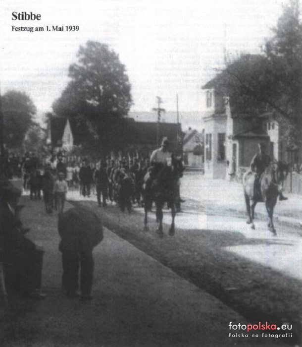, Zdbowo (Stibbe) - przemarsz, parada ulicą miejscowości 1 maja 1939 roku.
