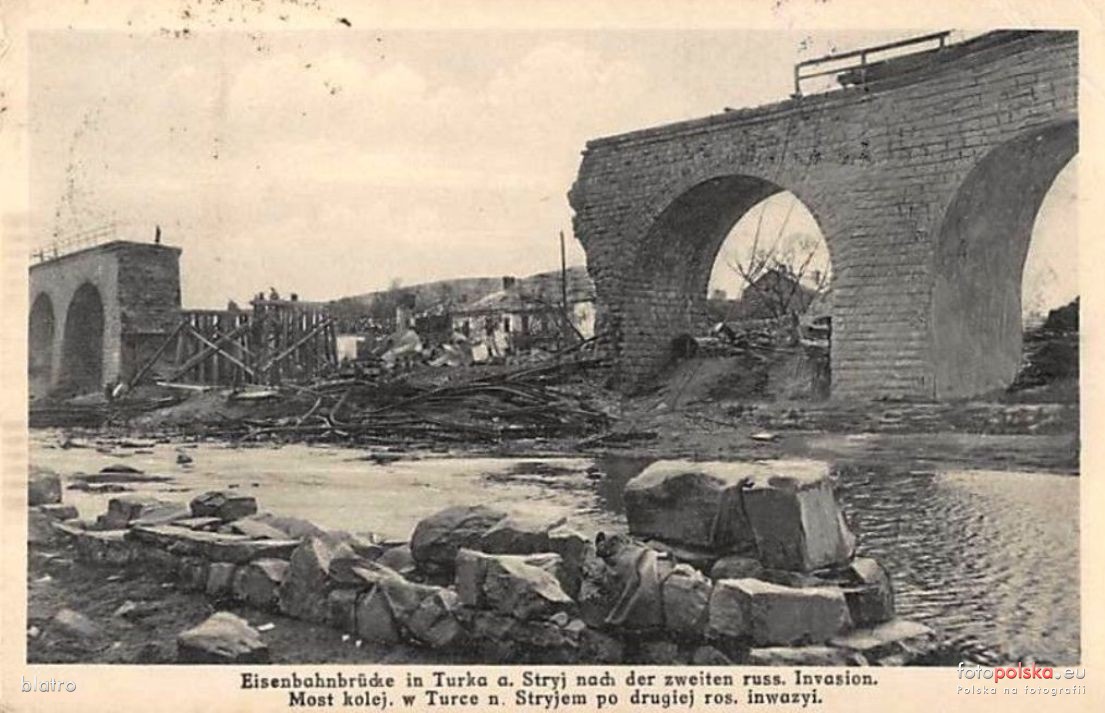 1916 , Uszkodzony most kolejowy w Turce nad Stryjem.Skomentuj zdjęcie |