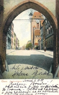 8 pobrań 868 odsłon 6 średnia ocen Poprzednie i następne zdjęcia legion Obiekty widoczne na zdjęciu ul. Żeglarska więcej zdjęć (380) Dawniej: Siegerstrasse ULICA ŻEGLARSKA Początkowo nazwą tą określano tylko południowy odcinek ulicy od Bramy Żeglarskiej do ul. Rabiańskiej. Kolejny fragment do ul. Kopernika (dawniej ul. Świętej Anny) zwano do około XV w. "Naprzeciwko Wieży Kościoła Świętego Jana" lub "Koło Świętego Jana". Ostami odcinek, wychodzący przy Rynku Staromiejskim, zwano aż do końcaXVIII w. ulicą Kurzą, Kurną, Kokoszą lub Maślaną, z powodu prowadzonego tu handlu nabiałem. W średniowieczu przy ul Żeglarskiej mieszkali najbogatsi kupcy - patrycjusze, zasiadający często we władzach miejskich (radzie i ławie). Tutaj brał początek najważniejszy szlak handlowy dla przybywających Wisłą kupców, którzy po krótkim pobycie w Toruniu udawali się nad Bałtyk. Ulicę zwano również często "szlakiem królewskim", ponieważ przy Bramie Żeglarskiej witano uroczyście przybywających do miasta monarchów polskich, a później dostojny orszak udawał się do kościoła św. Jana i następnie do gościnnych komnat Ratusza Staromiejskiego. Na nabrzeżu za Bramą Żeglarską aż do Bramy Mostowej rozciągało się Przedmieście Portowe, zamieszkałe przez żeglarzy oraz ludność ubogą, obsługującą przystań i port miejski. |