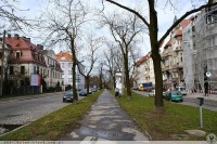 0 pobrań 637 odsłon 5.33 średnia ocen Poprzednie i następne zdjęcia zuf Obiekty widoczne na zdjęciu ul. Sudecka więcej zdjęć (1596) Dawniej: Hohenzollern Strasse, Platanen Allee, Süd-Park Allee Pierwsze plany wytyczenia ulicy powstały w latach 80. XIX wieku. Jednak dopiero w 1895 r. powstał plan, według którego zrealizowano później nową drogę. Szeroka, dwujezdniowa ulica, rozdzielona pasem zieleni prowadziła od ul. Grabiszyńskiej do al. Wiśniowej. Trzeba zaznaczyć, że powstawała ona w kolejnych etapach. Najstarsze odcinki ulicy znajdowały się przy ul. Grabiszyńskiej i w okolicach pl. Postańców Śląskich. Około 1904 r. do nowej ulicy przyłączono dawną ul. Platanową (Platanenalle), która ciągnęła się od al. Wiśniowej do al. Dębowej oraz nienazwany odcinek ulicy od al. Dębowej na południe (na niektórych mapach nosi on nazwę Parkstr.). Około 1920 r. ulicę wydłużono jeszcze od wiaduktu kolejowego do toru wyścigów konnych na Partynicach, lecz już wkrótce nadano mu nową nazwę Rennbahnstr. Przedwojenną nazwę ulicy nadano na cześć niemieckiej dynastii Hohenzollernów, królów Prus, a po 1871 r. cesarzy niemieckich. W czasie walk o Festung Breslau zabudowa ulicy do pl. Powstańców Śląskich została prawie w całości zniszczona. Były to głównie wysokie, bogate kamienice. Najmniej ucierpiał południowy, willowy odcinek ulicy. Po wojnie ulicę na całej długości nazwano Sudecką. Jednak taki stan utrzymywał się do 1969 r. Wtedy właśnie władze ukraińskiego miasta Zaporoże nazwały jedną z ulic Wrocławską. Żeby nie być gorszymi władze Wrocławia przemianowały odcinek ul. Sudeckiej od ul. Grabiszyńskiej do pl. Powstańców Śląskich na ul. Zaporoską. Od tego czasu numeracja ul. Sudeckiej zaczyna się od nr 74. |