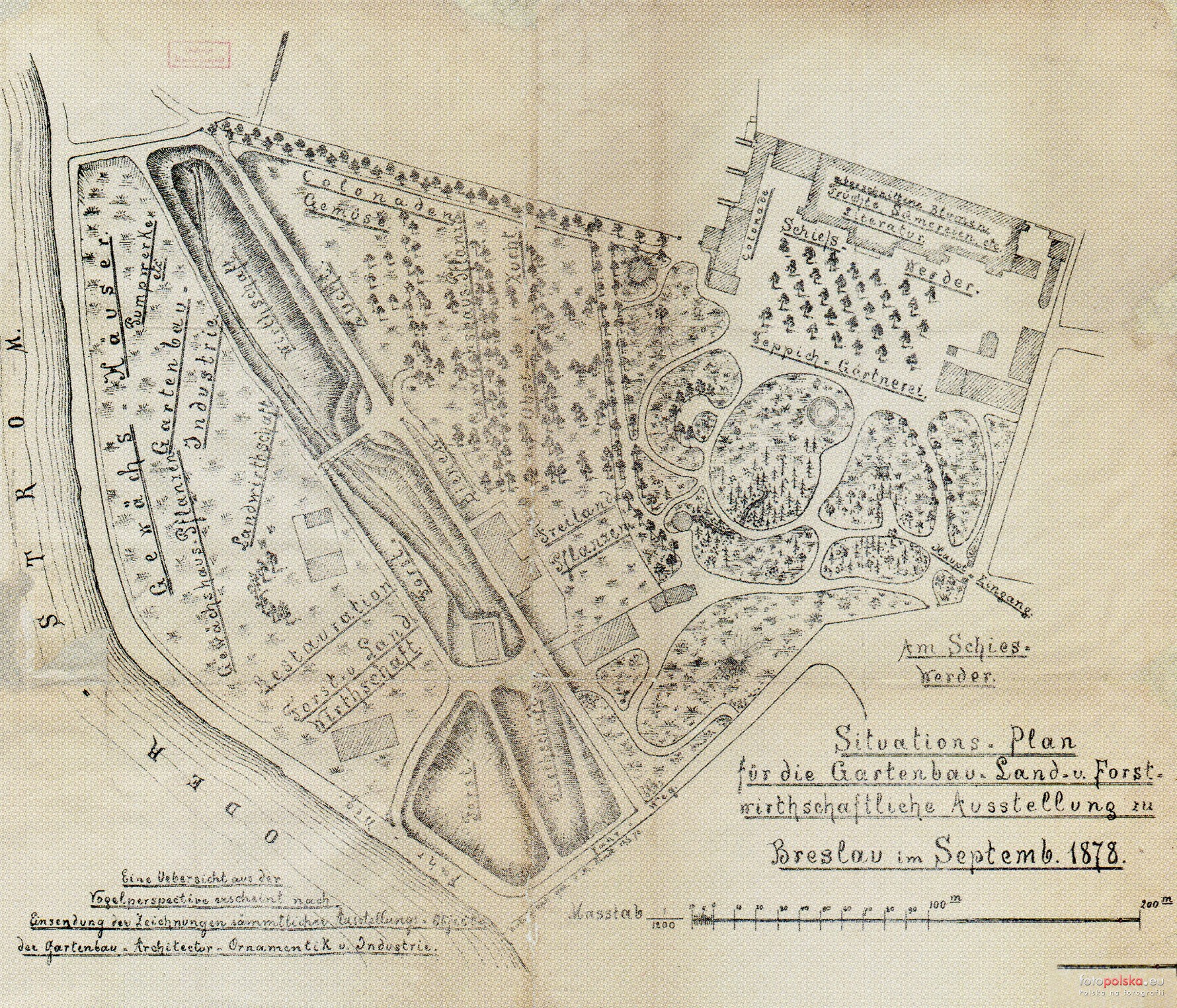 1878 , Plan terenów wystawowych Śląskiej Wystawy Ogrodniczej z 1878 roku która odbyła się na Kępie Strzeleckiej.Skomentuj zdjęcie |