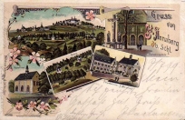 Lata 1890-1899 , Góra Świętej Anny - panorama, rajski plac, kościół św. Krzyża, Góra Oliwna i kościół z klasztorem w Porębie.Skomentuj zdjęcie |