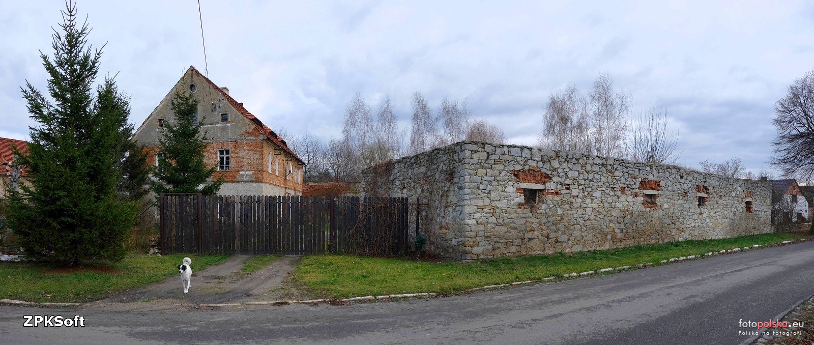 3 grudnia 2015 , Budynek mieszkalny i pozostałość po starym kamiennym budynku gospodarczym (stajni) stojące na terenie posesji nr 19.Skomentuj zdjęcie