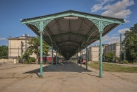 20 lipca 2013 , Wiata przy peronie byłego dworca. W każdą niedzielę służy jako miejsce sprzedaży dla kupców z targowiska. |