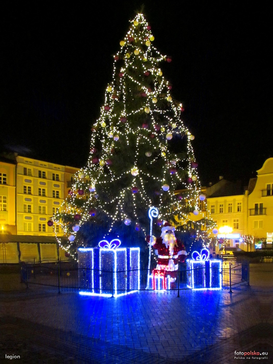10 grudnia 2015 , Choinka i świąteczna iluminacja świetlna na płycie Starego Rynku, w tle kamienice w północno - zachodnim narożniku Starego Rynku.Skomentuj zdjęcie |