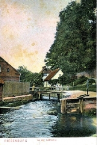 1900 , Prabuty - młyn garbarski ( An der Lohmühle am Mühlengraben - um 1900). |