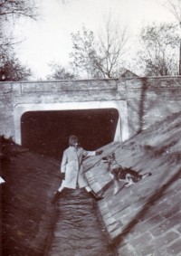 1965 , Wlot kanału w roku 1965 jeszcze przed zamontowaniem kraty. W tym czasie jeszcze służby miejskie regularnie czyściły kanał i konserwowały brzegi. Dziś jak cały park jest zaniedbany.Skomentuj zdjęcie