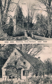 1910 , Niemica w pow. sławieńskim - kościół i plebania.Skomentuj zdjęcie |