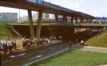 czerwiec 1987 , Kładka dla pieszych nad dwupoziomowym skrzyżowaniem alei Jana Pawła II (dołem) i alei Rzeczypospolitej .Skomentuj zdjęcie
