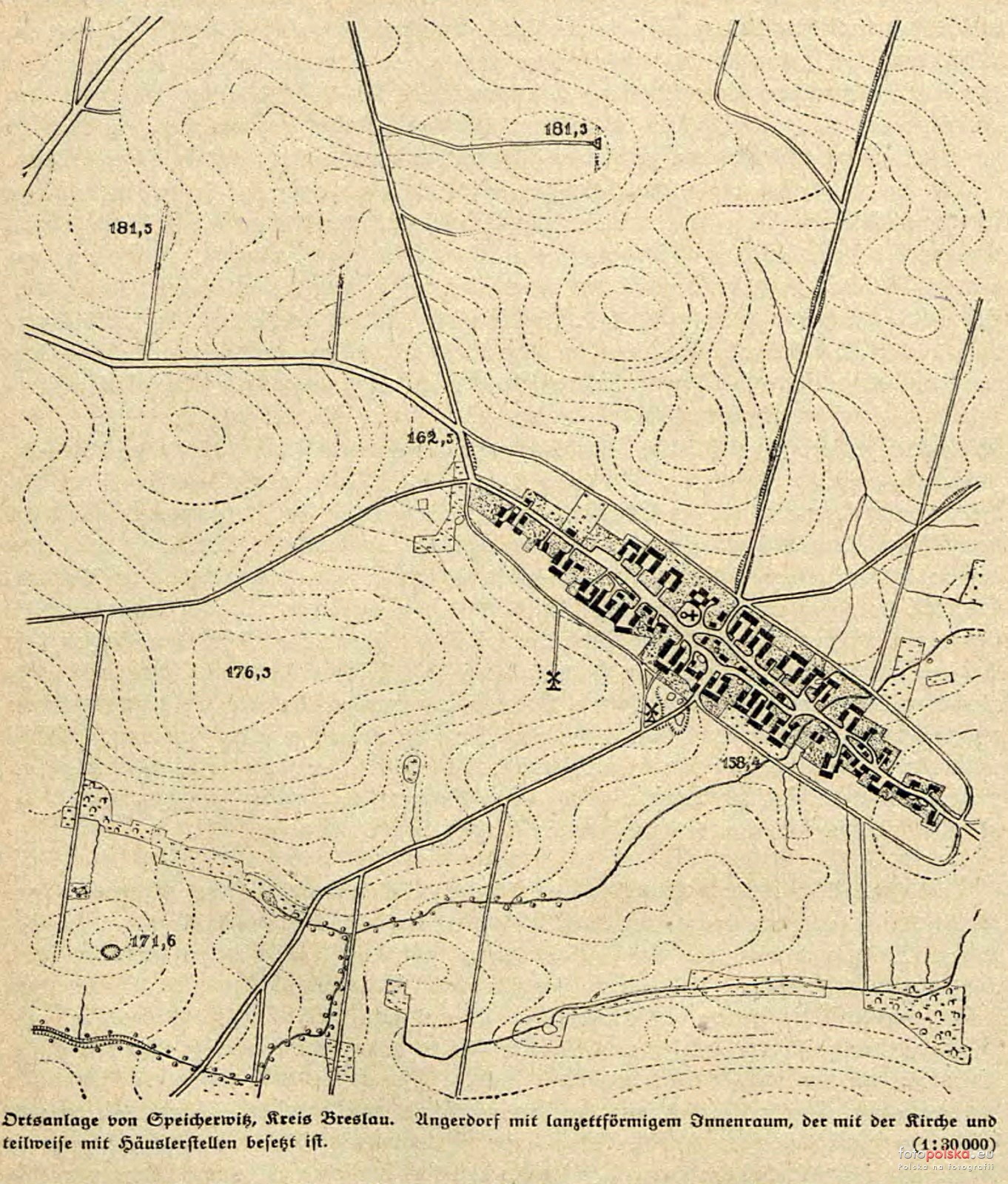 Lata 1930-1941 , Plan wsi Pichorowice (powyżej literówka w druku, powinno być Peicherwitz).Skomentuj zdjęcie