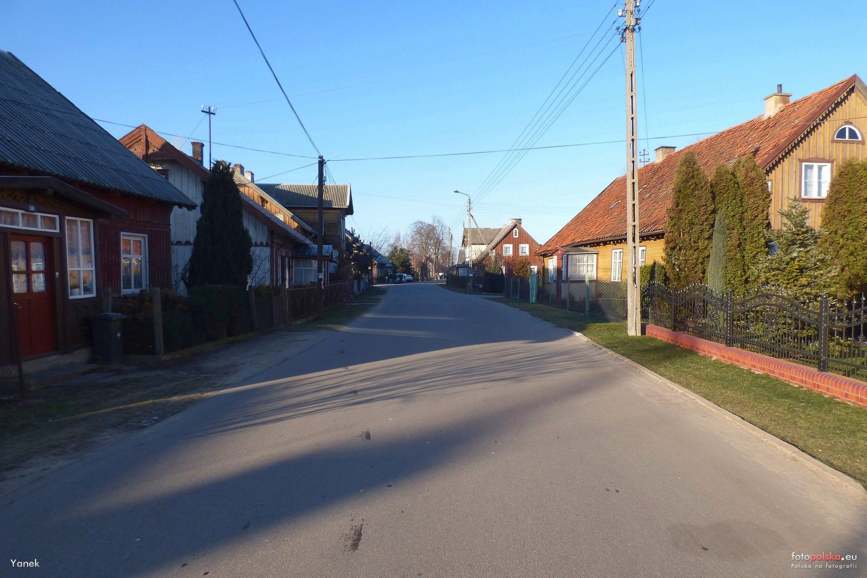 , Tujsk, wieś ulicówka. Widok od nr 19 (z lewej) w kierunku północno-zachodnim.