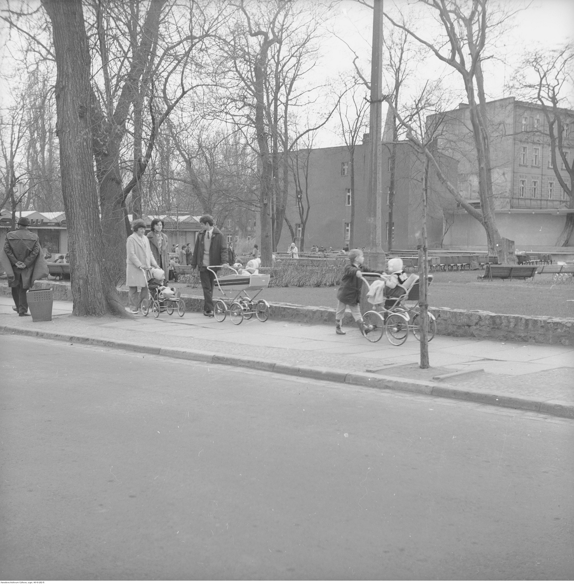 1972 , Park na placu Wolności. W tle, po prawej stronie, zadaszona scena która zastąpiła klasyczną muszlę koncertową. Scena ta została ostatecznie wyburzona w roku 1978 lub 1979. Sygnatura: 40-G-182-5Skomentuj zdjęcie