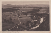 1928 , Janowice Wielkie. Widok z bezimiennego szczytu Gór Ołowianych obok Brożyny. Widoczne zabudowania ul. Leśnej, ul. Partyzantów i z lewej strony Dolnej Miedzianki (Kuźniczka)Skomentuj zdjęcie