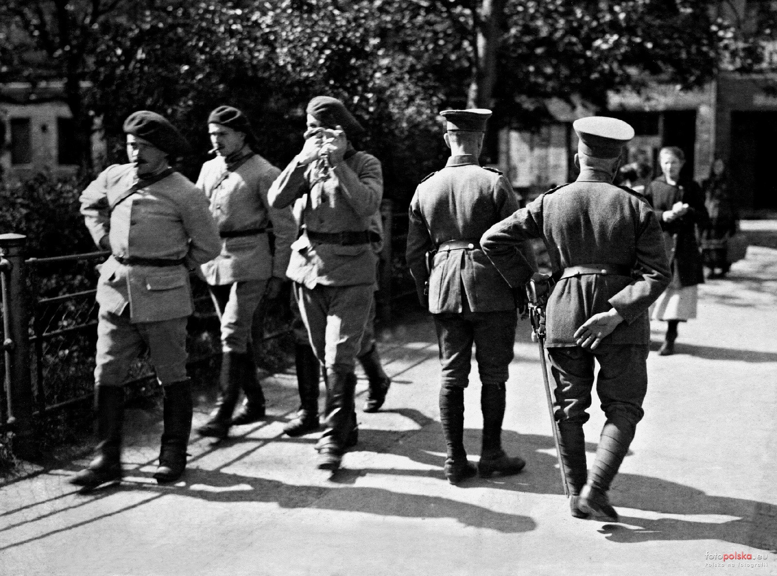 1920 , Opis za Cristoforo : Niemiecka policja i francuskie wojsko w Opolu, podczas plebiscytu - plac Wolności. Po lewej widoczne ogrodzenie skweru przed gmachem rejencji. Budynek z tyłu, to ówczesna siedziba gazety "Oppelner Zeitung".Skomentuj zdjęcie