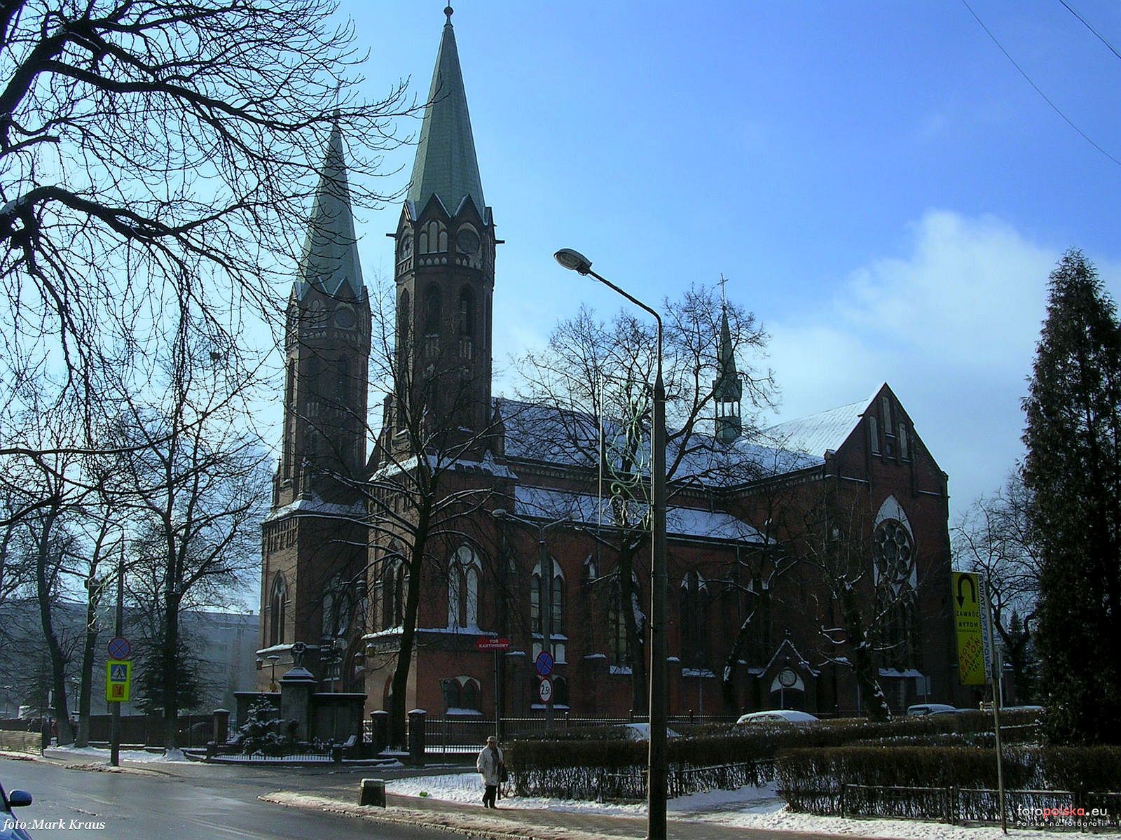 Kościół Dobrego Pasterza więcej zdjęć (25) Atrakcja turystyczna Zbudowano: 1905-1909 Dawniej: Guten Hirten Kirche Zabytek: - Kościół Dobrego Pasterza w Bytomiu-Karbiu – rzymskokatolicki kościół parafialny wzniesiony w latach 1905–1908 w Bytomiu-Karbiu, wpisany do rejestru zabytków nieruchomych województwa śląskiego. Należy do dekanatu Bytom-Miechowice diecezji gliwickiej. Historia Budowa świątyni została rozpoczęta w 1905 roku[2]. Kościół został zaprojektowany w 1904 roku przez mistrza budowniczego, Maksa Sliwkę[3] (lub Śliwkę[2]) z Zabrza–Zaborza. Budowa była nadzorowana przez Paula, mistrza murarskiego z Karbia[2]. Budowa świątyni została zakończona w 1908 roku[2] i poświęcił ją proboszcz parafii Wniebowzięcia Najświętszej Maryi Panny w Bytomiu, ksiądz dziekan Buchwald w 1909 roku[2]. W latach 1984–1986 przeprowadzono remont kapitalny kościoła, wzmocniono konstrukcję, która została naruszona przez szkody górnicze[2]. Architektura Jest to kościół wzniesiony w stylu neogotycko-modernistycznym[2], halowy, trzynawowy, posiadający chór muzyczny i dwie wieże od strony wschodniej o wysokości 56 metrów. Ołtarz główny jest skierowany w stronę zachodnią i reprezentuje styl neogotycki, jest bogato rzeźbiony w drzewie i polichromowany, ozdobiony jest złoceniami, w centralnej części znajduje się obraz Chrystusa Dobrego Pasterza, natomiast po lewej i prawej stronie postacie św. Augustyna i św. Ambrożego, doktorów Kościoła. W nawie krzyżowej są umieszczone ołtarze św. Anny i św. Barbary. świątynia jest ozdobiona witrażami, przy filarach są umieszczone postacie Matki Boskiej, św. Józefa i Apostołów, rzeźbiona ambona i wspaniałe płaskorzeźby stacji drogi krzyżowej. Na chórze są umieszczone organy wybudowane przez firmę Berschdorf z Nysy, z interesującym prospektem, posiadają 35 piszczałek, dwie klawiatury i pedał. ul. Popiełuszki Jerzego, ks. więcej zdjęć (29) |
