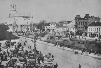 Lata 1925-1930 , Grodno. Rynek i fara Witoldowa przerobiona za okupacji rosyjskiej na cerkiew. W 1920 r. artyleria utrąciła kopułę.Skomentuj zdjęcie |