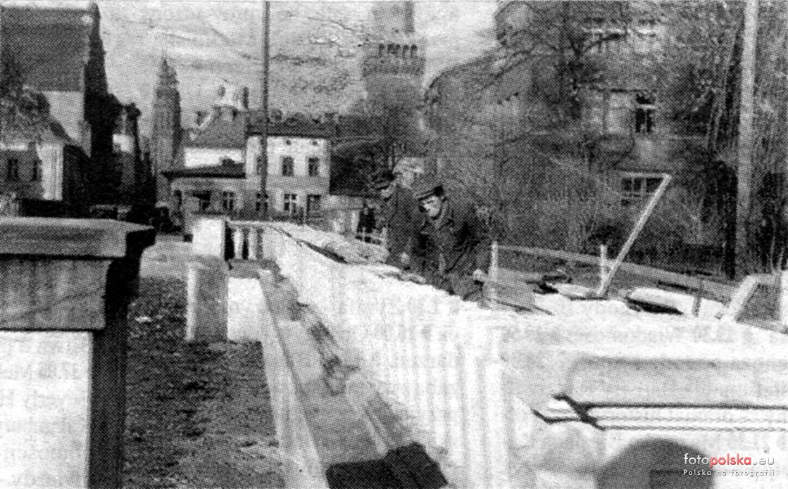 Lata 1956-1957 , "To było w latach pięćdziesiątych. Na pierwszym planie Józef Kwietoń, wówczas pracownik zakładu kamieniarskiego rodziny Wenclów" - napisała pani Wilhelmina Doszczątek z Opola". Ojciec pani Wilhelminy pracował przy budowie kamiennej balustrady przy opolskim placu Wolności. Zdjęcie publikowane 16 lat temu w NTO w historycznych wspomnieniach "Opolanie 2000. Trochę później naSkomentuj zdjęcie