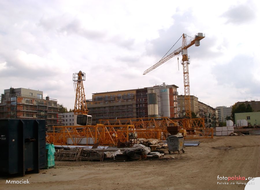 4 października 2008 , Elementy nowego żurawia. Podczas robienia tego zdjęcia miałem bardzo nieprzyjemną rozmowę z Panem Ochroniarzem na temat: Jakim prawem robię zdjęcia??!! Rozmowa dotyczyła także, że grozi mi sąd ;-), że nie mam zezwolenia i że za chwilę mogę stracić swój aparat. Nie przejęty tymi wywodami dalej kontynuowałem robienie zdjęć, a pan ochroniarz zaczął mnie straszyć policją. Niestety nie przyjechała. W ogóle nie chciał słuchać żadnych tłumaczeń czy wyjaśnień, nie wolno i już! Cóż zakończyłem rozmowę, ale towarzystwo panów ochroniarzy miałem już cały czas podczas robienia sesji tego osiedla. Przypomina mi się stare przysłowie z przedszkola "Nie strasz, nie strasz, bo się zesrasz" ;D