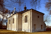 3 pobrania 733 odsłony 6 średnia ocen Poprzednie i następne zdjęcia Wiesław Smyk Obiekty widoczne na zdjęciu Kościół Matki Bożej Królowej Polski więcej zdjęć (5) Dawna cerkiew parafii greckokatolickiej, pw. św. Mikołaja, obecnie kościół parafii rzymskokatolickiej pw. MB Królowej Polski. Wzniesiony w r. 1850, zamieniony ok. r. 1875 na cerkiew prawosławną; restaurowana w r. 1900, wówczas zapewne dobudowana część frontowa z wieżą, oddany katolikom w r. 1919 i w tym samym roku poświęcony przez ks. Juliana Kilińskiego, odnowiony po r. 1945, kolejne remonty w r. 2000 m.in.: elewacji zewnętrznej, dachu, wieży kościelnej, dzwonnicy. Świątynia klasycystyczna. Orientowana. Murowana z cegły, otynkowana. Dwudzielna. Nawa prostokątna, dwuprzęsłowa z węższym, jednoprzęsłowym prezbiterium, zamkniętym ścianą prostą. Przy prezbiterium od strony północnej czworoboczna zakrystia, być może późniejsza. Przy nawie od zachodu wieża z dwiema lokalnościami po bokach, kryjąca pierwotną fasadę. Wnętrze nawy rozczłonkowane pilastrami pomiędzy którymi płytkie arkadowe wnęki zamknięte łukiem spłaszczonym, na zewnątrz analogiczne podziały. Sklepienia kolebkowo-krzyżowe, w nawie na podwójnych gurtach. W nawie dwa fragmenty polichromii ze scenami: Widzenia św. Teresy i Wskrzeszenia Piotrowina, zapewne z okresu budowy świątyni. Fasada o narożach boniowanych, pierwotnie rozczłonkowana pilastrami (częściowo widocznymi) i zakończona zapewne trójkątnym szczytem. Otwory okienne zamknięte łukiem odcinkowym, w opaskach. Dachy dwuspadowe, niższy nad prezbiterium, z wieżyczką na sygnaturkę o cebulastej kopułce nad nawą, nad zakrystią pulpitowy, kryte blachą. Ołtarz główny o cechach klasycystycznych, zapewne z okresu budowy, z rzeźbami dwóch aniołów, rokokowymi z 2. poł. w. XVIII w zwieńczeniu oraz obraz MB Królowej Polski na tle Częstochowy. Po prawej stronie kościoła ołtarz boczny z obrazem św. Teresy. Krzyż ołtarzowy z 1. poł. w. XIX. Kielich gładki z 1. poł. w. XIX. Ornat z tkaniny 1. poł. w. XIX. Na cmentarzu kościelnym pomnik nagrobny Stanisława Batowskiego (zm. w r. 1823) i Katarzyny z Jankowskich Batowskiej (zm. w r. 1825), z herbami Jastrzębiec i niezidentyfikowanym, wykonany przez J. Sastowskiego w Warszawie. |