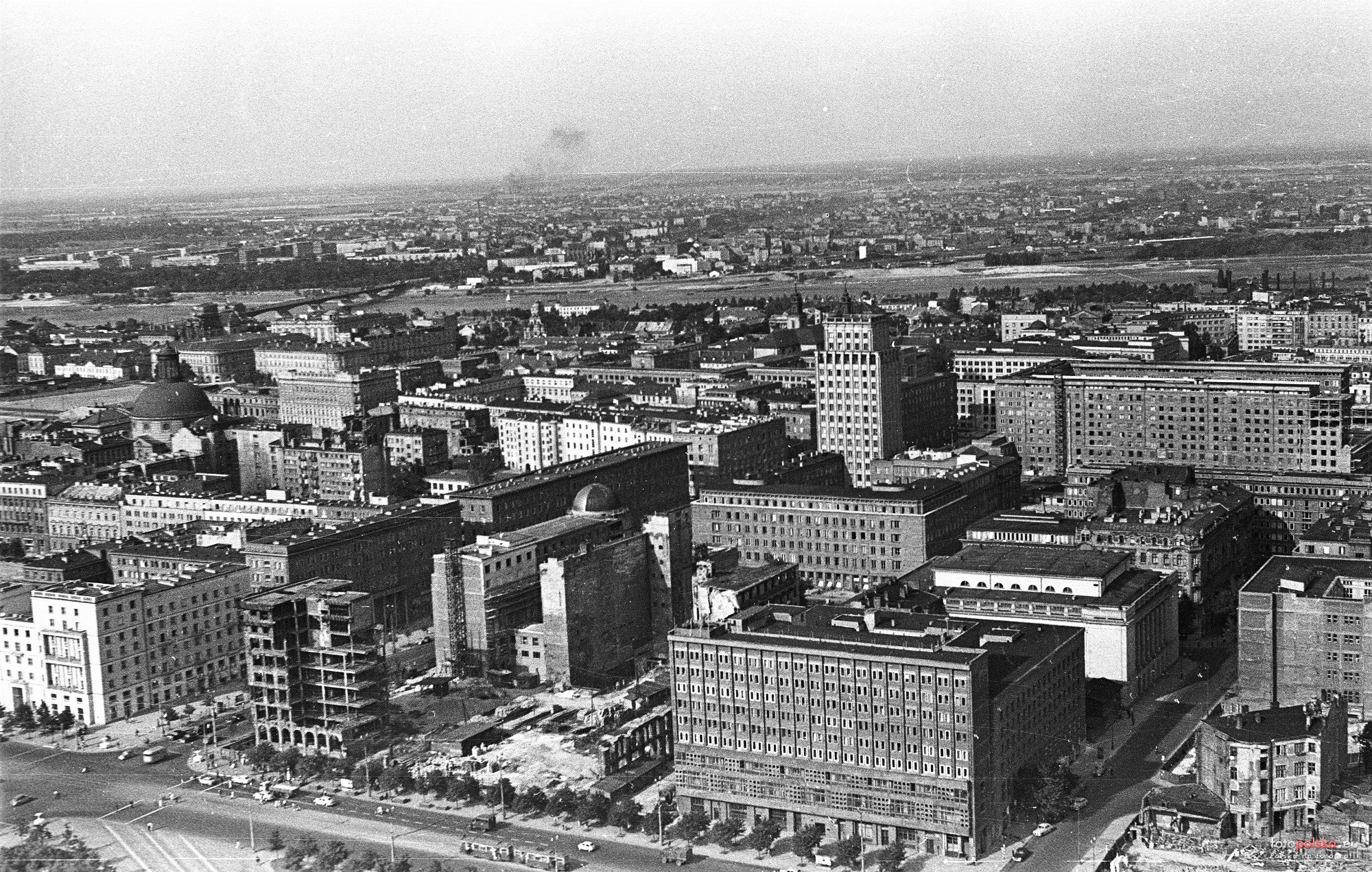 1959 , Panorama z tarasu. Skrzyżowanie Marszałkowskiej i Świętokrzyskiej. fortepan.hu/Lencse ZoltánSkomentuj zdjęcie