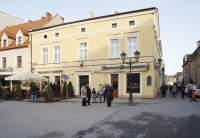 1 pobranie 368 odsłon 5.66 średnia ocen Poprzednie i następne zdjęcia kodens79 Obiekty widoczne na zdjęciu Rynek 9 więcej zdjęć (21) Zbudowano: ok. 1750 Zabytek: A/457/65 z 14.12.1965 r. Pierwotny budynek (prawdopodobnie jeszcze drewniany) spłonął całkowicie w wielkim pożarze Pszczyny w roku 1748. Pierwsze wzmianki o miejscu w którym dziś znajduje się kamienica pod numerem 9 przy rynku, znaleźć można na planach odbudowy Pszczyny, gdzie zaznaczono, że posesja ta składa się z 2 sąsiadujących ze sobą miejsc, i oba są przynależne do osoby o nazwisku Frisch. Zaś na reprodukcji planu odbudowy miasta po pożarze z roku 1749 w monografii Pszczyny autorstwa Ludwika Musioła miejsce to zostało zapisane jako siedziba Urzędu Skarbowego. Prawdopodobnie właściciel kamienicy Fritsch, wynajmował pomieszczenia dla działalności Urzędu Skarbowego. Prawdopodobnie właścicielem tej kamienicy był Friedrich Erdmann Frisch, ewangelik, urzędnik Urzędu Skarbowego w randze skarbnika powiatowego. W latach 1806-1810 właścicielem kamienicy był (według spisów ludności) Joseph Stanislaus Schmeer, katolik, kotlarz i kowal w miedzi. Schmeer wraz z żoną Josephą ustanowili w testamencie fundację na rzecz kościoła parafialnego Wszystkich Świętych w wysokości 50 talarów, oraz kościoła filiarnego Św. Jadwigi w wysokości 20 talarów, a także 10 talarów na rzecz miejskiego domu opieki. Joseph i Josepha Schmeer zostali po śmierci pochowani na cmentarzu Św. Jadwigi, przy bramie cmentarnej obok zabytkowego krzyża. W roku 1810 kamienica została zakupiona przez kupca Andreasa Traugotta Heinrich. Spadkobiercy Heinrich sprzedali kamienicę za 6000 talarów i w latach 1849-1854 należała ona do fizyka powiatowego (lekarza) Johanna Josepha Leopolda Haertela, który od 1846 r. był także królewskim radcą sanitarnym. Przeprowadził on w roku 1849 remont generalny kamienicy. Według opisu z roku 1850 w domu frontowym na parterze były 4 izby z komorami (małymi pomieszczeniami bez okien) i kuchnia, w których mieszkali właściciele kamienicy. Na pierwszym piętrze były również 4 izby, w tym jedna z balkonem, oraz komora i kuchnia. Pomieszczenia na I pietrze były wynajmowane. Strych i poddasze pozostawały niezamieszkałe. W podwórzu była oficyna, w której były 3 izby, w tym jedna z alkową, poddasze było przeznaczone na pomieszczenia gospodarcze. Była tam też stajnia dla koni. W przybudówce na podwórzu po lewej stronie znajdowały się chlewy dla świń i komórka na drewno. Kolejnym właścicielem kamienicy została Selma Hübner z domu Buchbach, żona pastora Johannesa Hübnera. Kolejnym zaś właścicielem w latach 1880-1896 był syn pastora, Paul Hübner, ożeniony z katoliczką Kathinką z domu Schramm. Paul Hübner w latach 1887-1893 pełnił w Pszczynie funkcję burmistrza. Po jego śmierci dom odziedziczyła jego żona i ona przeprowadziła przebudowę budynku, zaś w roku 1899 rozbudowała dom o kolejne dwa jednakowej wielkości pomieszczenia. Plany tej rozbudowy zatwierdziła miejska komisja budowlana w składzie E. Asser i Gustaw Staudinger, zięć Kathrinki Hübner. Od roku 1908 kolejnym właścicielem kamienicy był mistrz rzeźnicki Joseph Moritz, który w okresie dwudziestolecia międzywojennego był w radzie miejskiej przedstawicielem frakcji niemieckiej. Dobudował ona warsztat rzeźnicki z lodownią, oborę, pomieszczenia mieszkalne oraz szopy na drewno i węgiel. W latach 1922-1924 w kamienicy mieściło się biuro adwokata i notariusza Pawła Kempke, polskiego działacza narodowościowego i samorządowego, współtwórcy ustroju prawnego autonomii śląskiej, a w latach 1922-1935 posła Sejmu Śląskiego. W latach 1927-1933 w kamienicy miało swą siedzibę niemieckie Pszczyńskie Towarzystwo Bankowe (Plesser Vereinsbank), na parterze natomista po prawej mieścił się sklep papierniczy Sylwestra Wons. Po lewej od wejścia mieścił się zaś warsztat i sklep rzeźniczy Pawła Krzystolik. W roku 1935 pośmierci męża właścicielem kamienicy została wdowa Helena Moritz z domu Kreis. Obecnie w kamienicy na piętrze znajdują się mieszkania, zaś parter zajmują lokale gastronomiczne. Po lewej od wejścia znajduje się Pijalnia Soków (kawiarnia), zaś po prawej do niedawna mieściła się Kawiarnia Pszczynianka (obecnie lokal czeka na przebudowę i podział na mniejsze lokale gastronomiczne, do jednego z nich wejście pozostanie od strony rynku, do drugiego wejście przewidziano od strony ulicy Piekarskiej). (na podstawie opracowania p. Joanny Strońskiej-Przybyła, pracownika Archiwum Państwowego w Katowicach, oddział w Pszczynie publikowanego w książce "Z dziejów pszczyńskich kamienic i ich mieszkańców 1748-1939) - za jej zgodę na użycie serdecznie dziękuję) Rynek więcej zdjęć (866) |
