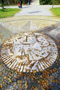28 października 2015 , Plaskorzeźba herbu miasta Koszalin przed Amfiteatrem-detail.Skomentuj zdjęcie