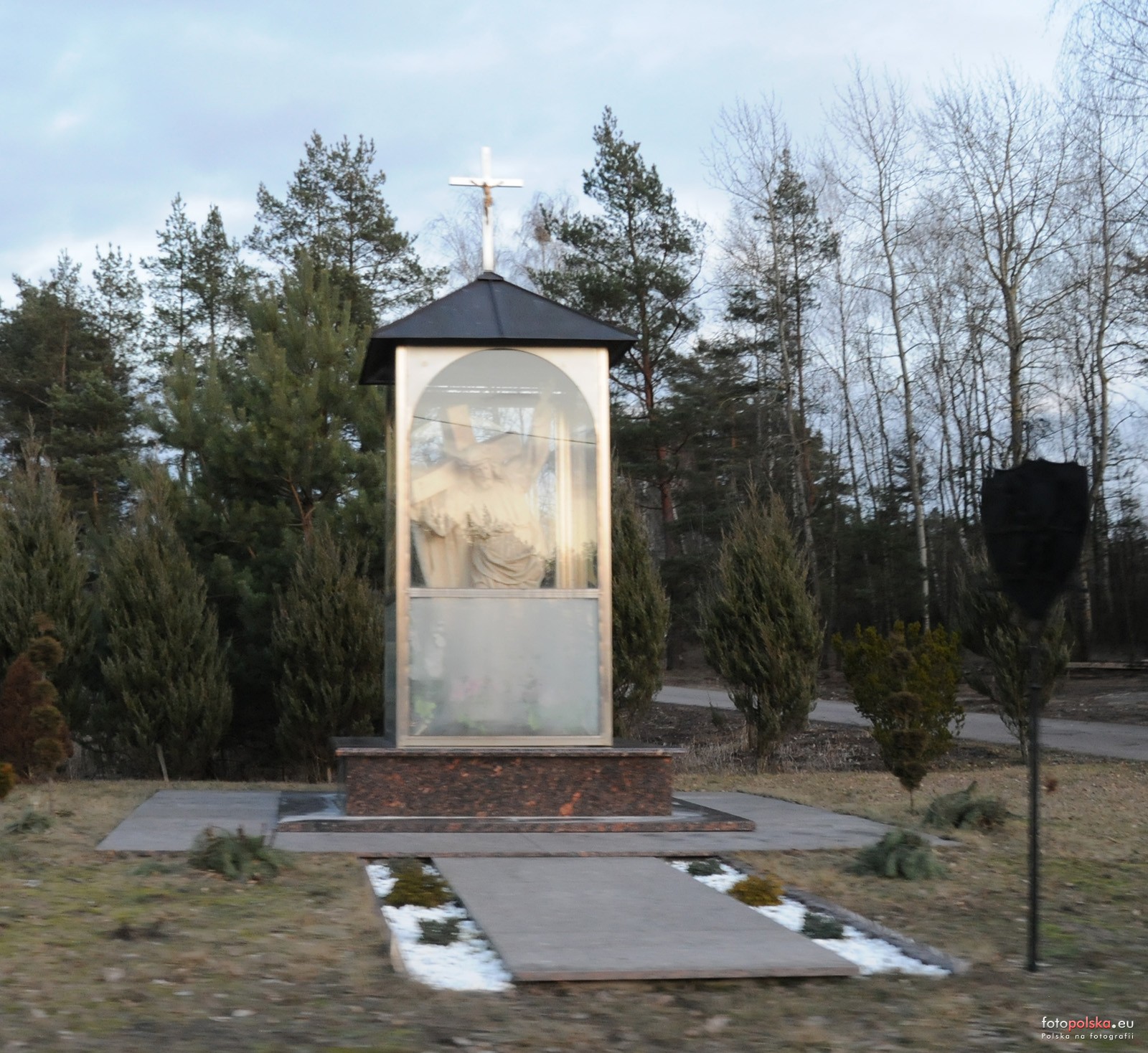 , Przydrożny krzyż, tuż obok zakładu kamieniarskiego.