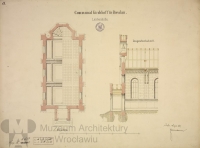 1867 , Projekt kaplicy cmentarnej - rzut parteru i fragment przekroju podłużnego.Skomentuj zdjęcie |