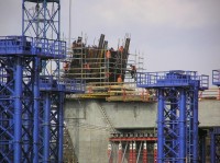 8 marca 2010 , Pylon na wyspie będzie miał 122 m wysokości.Widok na jedną z odnóg z pracującymi tam ludźmi.Skomentuj zdjęcie