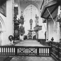 Zwracają uwagę dawny ołtarz główny wykonany w stylu renesansu niderlandzkiego z roku 1605 i obecny główny, najpełniejsze dzieło barokowe na Pomorzu (1688).