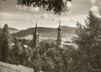 Lata 1930-1935 , Panorama Mieroszowa z kościołami dwóch wyznań.Skomentuj zdjęcie |