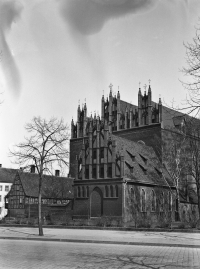 Architektura kaplicy, podobna do dużego kościoła, nasuwa przypuszczenie, że budowniczym był ten sam architekt. Patrząc z zewnątrz, muszą zachwycać wspaniałe szczyty zachodnie, które razem ze szczytami kościoła Św. Trójcy, tworzą niezapomniany i jedyny w swoim rodzaju nastrój. Tak dekoracyjnie bogate i finezyjne zwieńczenia z ceglanych kształtek spotkamy w niewielu gotyckich budowlach. Dodatkowo, każdy ze szczytów zwieńczony jest kutym, żelaznym krzyżem. Do dziś, te zachowane krzyże są wspaniałymi zabytkami średniowiecznego kowalstwa.