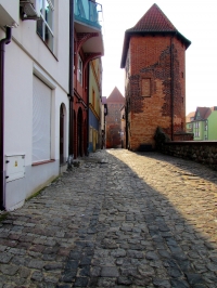 28 lutego 2016 , Północny fragment ulicy Podmurnej z Basztą Wronią i Bramą Człuchowską w tle.Skomentuj zdjęcie |