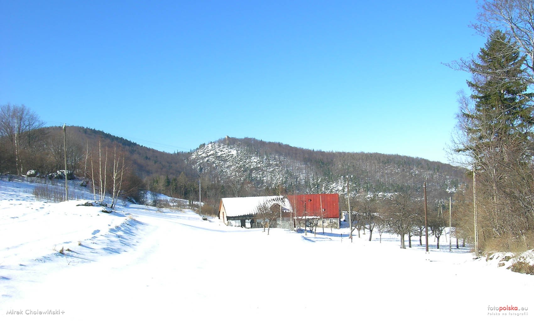 20 lutego 2004 , Budynki w Zachełmiu i widok na Chojnik.Skomentuj zdjęcie