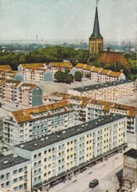 Lata 1966-1967 , Widok na staromiejskie blokowisko z wieży kolegiaty. Przy ulicy Grodzkiej blok nr 6 i ciekawy relikt starej zabudowy.Skomentuj zdjęcie |