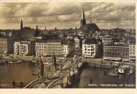 Hansabrücke (Most Hanzy) więcej zdjęć (131) Zbudowano: 1903 Zlikwidowano: 1953 Dawniej: 1945-1953 Most Sobieskiego 8 maja 1903 oddano do użytku nowoczesny most nazwany Mostem Hanzy (niem. Hansabrücke). W przeciwieństwie do poprzedniej konstrukcji był to most zwodzony. Pierwszy tramwaj kursujący po moście (linia nr 1) przejeżdżał przez niego siłą rozpędu do czasu położenia sieci trakcyjnej w 1929. Most Hanzy został wysadzony 20 kwietnia 1945 przez wycofujące się wojska Wehrmachtu.W sierpniu 1947 na filarach zniszczonego mostu położono drewnianą kładkę, którą zlikwidowano najpewniej w 1948 roku po wybudowaniu przeprawy na przedłużeniu ulicy Dworcowej. Most rozebnrano w 1953 roku.