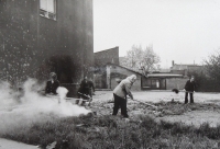 4 maja 1975 , Po lewej fragment budynku Zakładu Badawczo-Doświadczalnego przy hucie im. Mariana Buczka. Porządkowanie terenu w ramach czynu społecznego przez pracowników huty.Skomentuj zdjęcie |